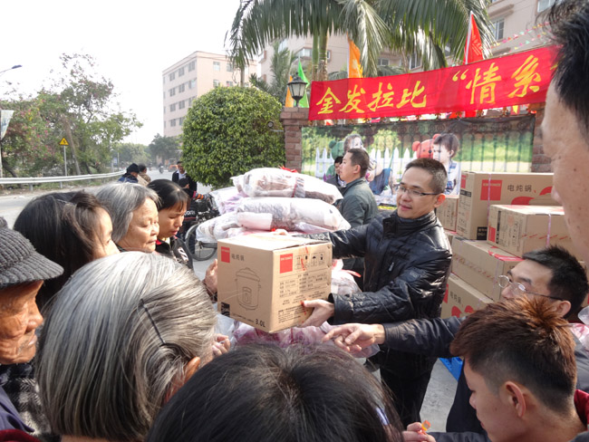 2014年1月19日,清晨寒烈的风挡不住爱心的温暖,只因今天是一个特殊的日子,是一个值得我们每一位金发人永远铭记的日子—厂庆日!公司在每年的今天,都会拿出物资发放给附近的乡亲邻里,今年公司给每位乡亲准备了品牌电炖锅和毛毯,为他们送去冬日里的一缕温暖。 爱心不论大小,爱心需要传承!金发拉比正是始终如一的秉持和践行着爱心理念,而作为金发人的一员,我们更因此而倍感自豪,因为我们一直在经营和传承“爱”的事业。
